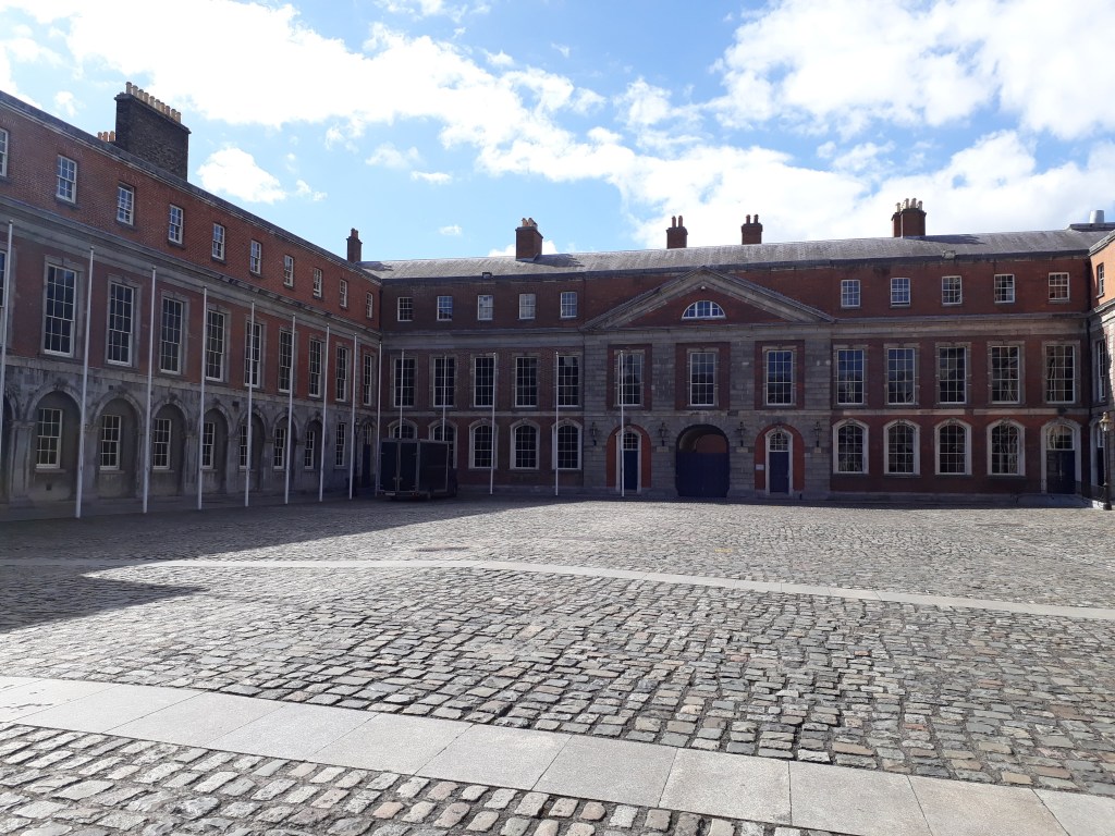 On leaving the museum, I had a short walk to Kilmainham Gaol. As with Dublin Castle, I had used my English Heritage membership to pre-book a tour for free. You can only visit by pre-booked tour, which sell out in advance – because I had only tried to book a few days before my visit, the only available slot was a bit later than ideally I would have liked. Our guide took us on tour to all parts of the prison, giving us information about its history from its opening in 1796 to its closure by the Free State government in 1924. Particularly poignant was the Stonebreakers’ Yard where 14 of the leaders of the 1916 Easter Rising had been executed by the British. (Our tour guide glossed over that the Free State had subsequently executed a larger number of Civil War anti-treaty prisoners in Kilmainham.) At the end of the tour, which lasted about an hour and a quarter, I was free to explore the Gaol’s museum – I did not have time to do this thoroughly, as I needed to leave to catch my flight back home.