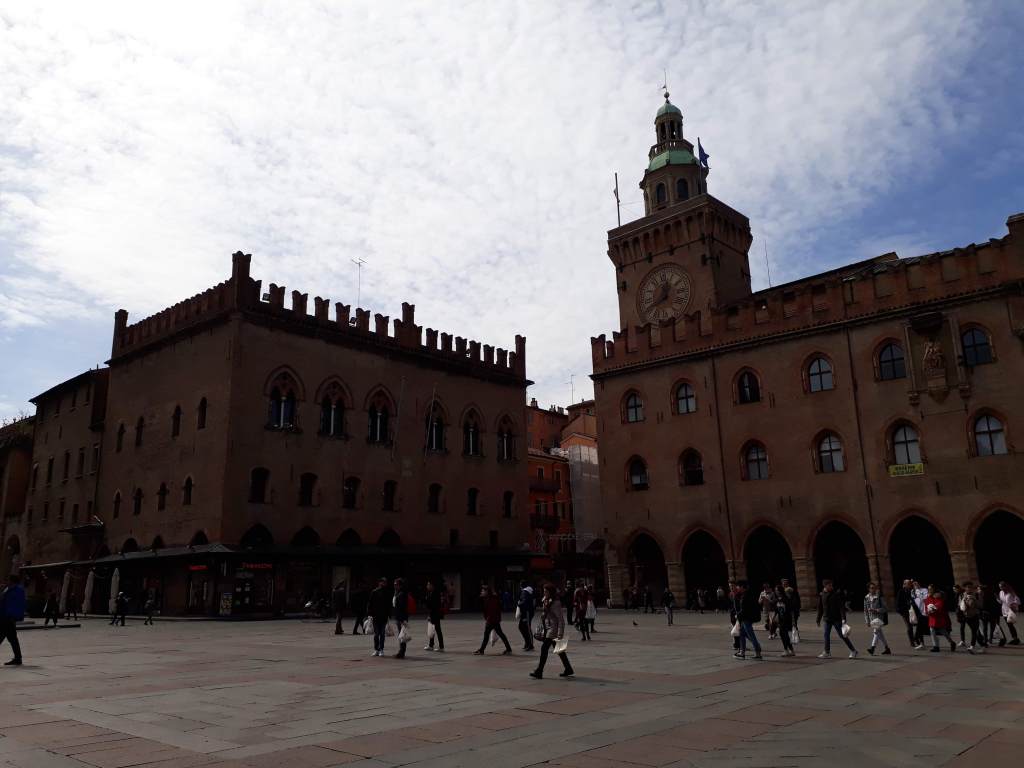 Flying time was a little longer than for the flights I had taken on my other recent European visits, so I did not arrive until about 1130 (local time). Bologna Airport is only about 3.5 miles from the city centre. The monorail from Bologna Airport to the main railway station was nearly complete, but was not yet operational. (It was due to open in March 2020, but the Covid pandemic seems to have scuppered that.) So I caught the airport bus and walked from the drop off point to the Piazza Maggiore, utilising the colonnades for which Bologna is famous.