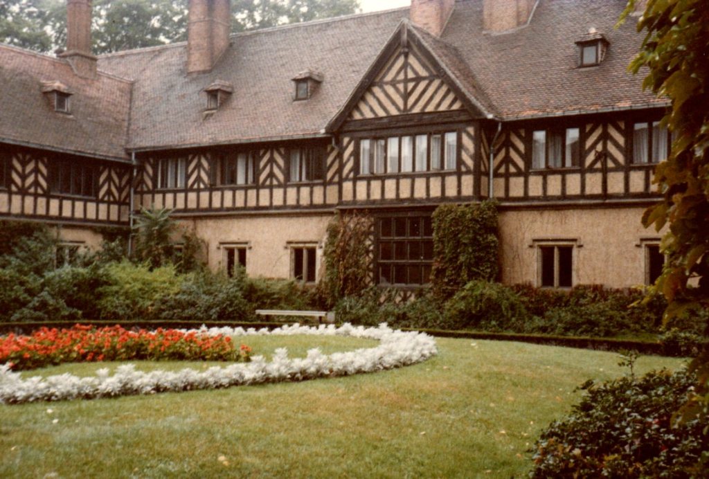 We left Leipzig in the morning and travelled to Potsdam to the west of Berlin. Our first stop in Potsdam was was the Cecilienhof Palace close to the shore of the Jungfernsee lake. To call it a palace is a bit of a misnomer in my opinion – it was completed in the early twentieth century in the style of an English Tudor manor house. It is most famous for being the location of the Potsdam conference in 1945 when the Russians, Americans and British negotiated the division of Germany and the rest of Europe. I found the Cecilienhof fascinating – the main hall still had the large round conference table on which were laid out maps showing possible divisions of Europe, with photographs on the walls of Stalin, Churchill and Truman and others sitting round the table. Our small group had the place to ourselves while we were there and were able to wander freely around the room examining in detail the documents and maps on the table. (On my subsequent two visits to the Cecilienfof most of the area had been roped off and on my most recent visit the maps had gone.)