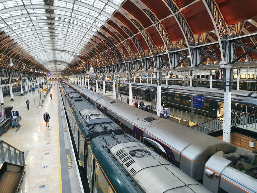 The train was fairly empty as far as Plymouth, but there large numbers of non-mask wearing passengers got on filling up the carriage. It took just over an hour to travel from Plymouth to Exeter St Davids, where the train arrived at 12:20pm, seven minutes late – the only late arrival of my whole trip.