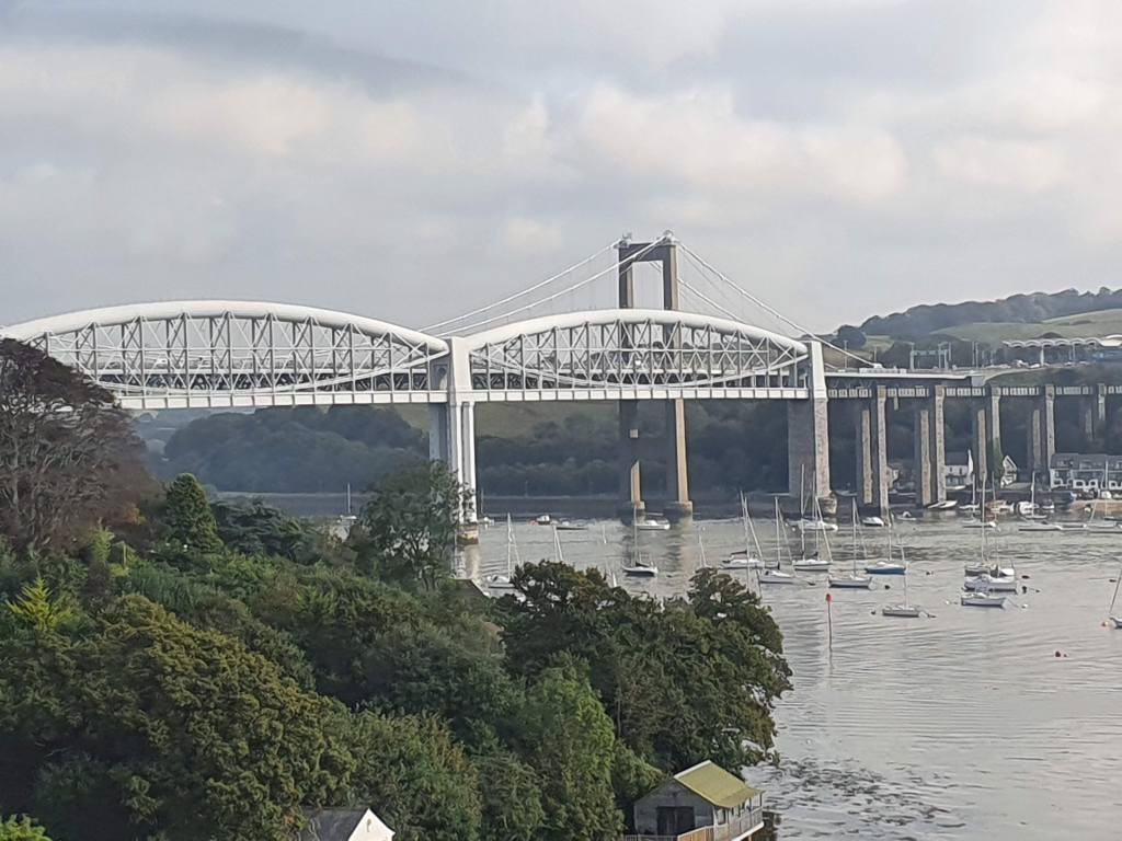 After leaving the main line to Bristol shortly after departing from Reading, the train followed the Kennet and Avon canal for a number of miles before arriving in Exeter. On leaving Exeter, the scenery became more impressive – first following the Exe estuary to the coast before returning inland via the Teign estuary. Shortly after Plymouth the train crossed into Cornwall on Isambard Kingdom Brunel’s 1859 Royal Albert Bridge.