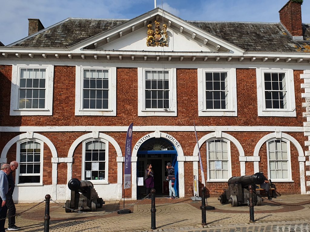 From the Cathedral I walked down to the Exeter Quay, where the old Custom House is now a small museum and tourist information office. After looking round the displays explaining the history of the quay and Exeter’s history as a port, I picked up some leaflets for three city walking trails, for which there are display boards dotted around the city. Exeter Quay was busy with many of the old warehouses now converted into bars and restaurants, with customers sitting outside in the warm afternoon sun.