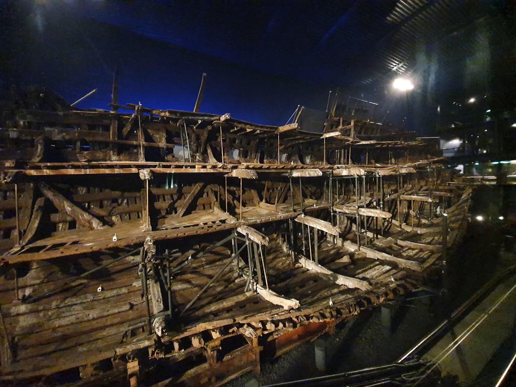 The purpose of my visit today was to see the Mary Rose, the pride of Henry VIII’s fleet, which sank in the Solent in 1545 and was raised from the seabed in 1982. The Mary Rose did not disappoint – one is immediately struck by the sheer size of the vessel, but there were also half a dozen galleries at each end showing artefacts and telling the story of the boat, how it sank and how it was recovered over four hundred years later. I took my time going round and by the time I had finished the dockyard was about to close for the evening.