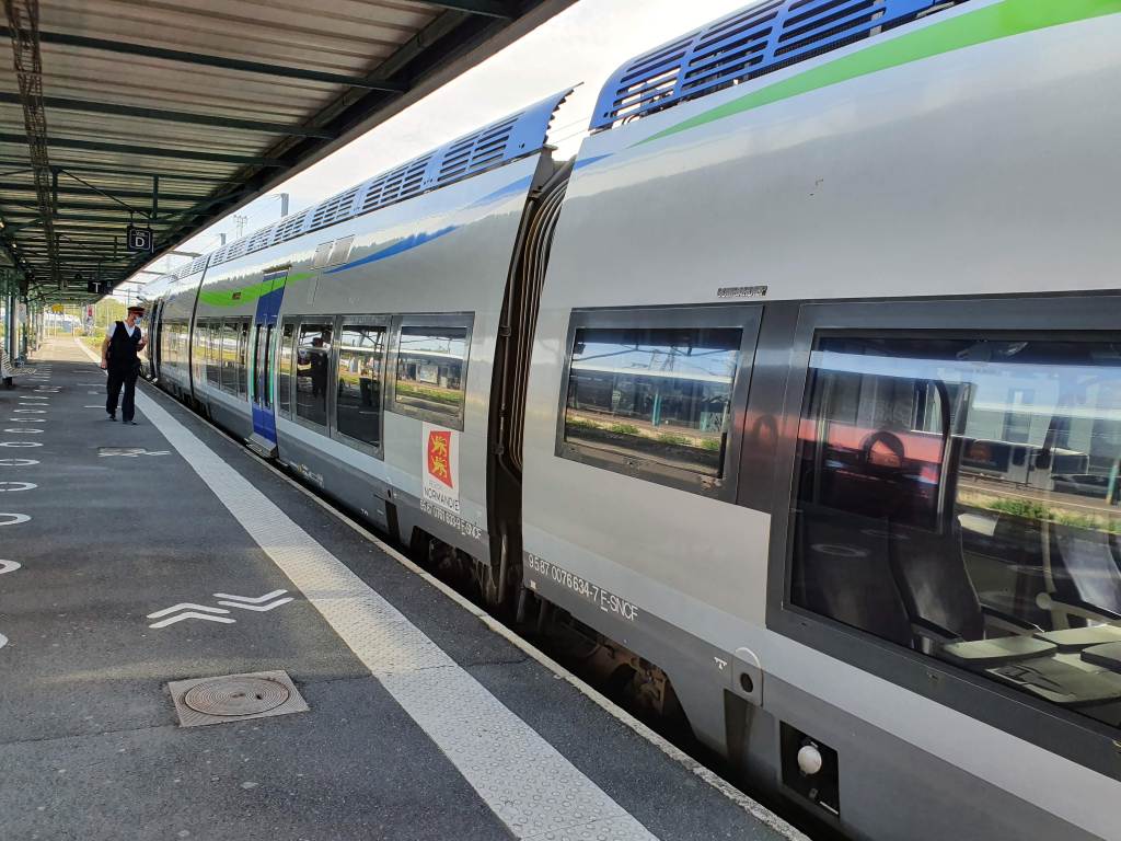 Shortly after I arrived at the station they opened the gate to the platform to let the passengers board the train which was already waiting. The train was going to Paris, but I would be riding on it for just under an hour to Bayeux – my seat was on the upper deck of the double-decker train.
