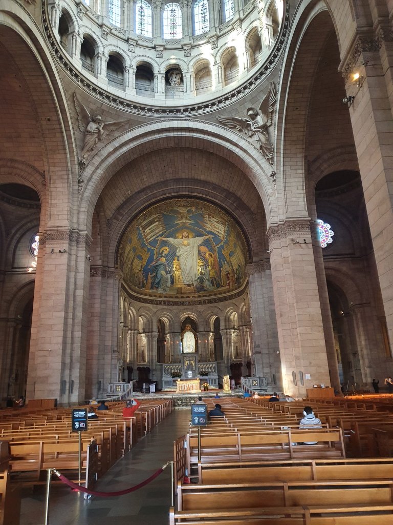 The train arrived at Paris Gare St Lazare a few minutes early. Upon leaving the station I was shocked to see how busy Paris was. The pavements were heaving with pedestrians and the roads clogged with hooting vehicles. I had contemplated visiting another museum or gallery while in Paris, but concluded that I would not have time to do it justice, so instead I walked from Gare St Lazare to Sacré-Cœur and went inside the basilica.