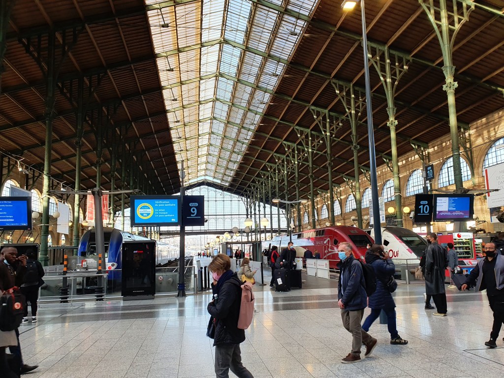 When I reached the Eurostar terminal, a Eurostar employee asked to see the UK Passenger Locator Form on my phone, but she did not look at it at all closely. She was also asking passengers whether they had a British or a EU passport, and dependent on the answer was directing them to different queues. When I said ‘both’, she just shrugged her shoulders and I chose the shorter queue (I’m not sure which one it was). As I had entered France on my EU passport, I needed to show that to the French border officials to leave, but I had put my British passport details on my UK Passenger Locator form so I need to show that one at the UK border post. The French official asked to see my Pass Sanitaire, as it is required to travel on French high speed trains. The British official did not ask about my Passenger Locator Form – I don’t know if this is because it is automatically linked to my passport. Instead they just asked me when I had arrived in France and then let me pass.