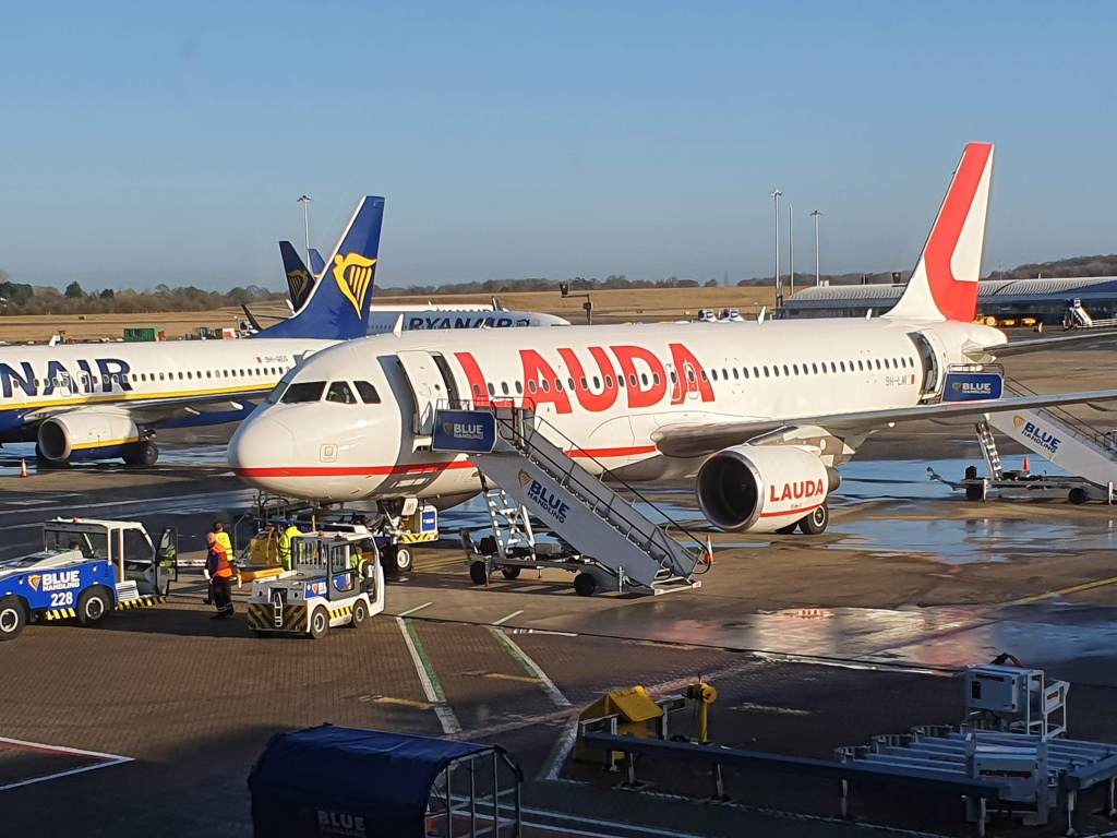 I arrived at the airport at 0730 – going through security was quick, so I had time to purchase some breakfast. The main departure waiting area was very crowded – so I made an educated guess about where my plane was likely to depart from and went there, which was much quieter to eat my breakfast. My research had been correct and after a short while the departure gate was confirmed on the airport screens. Boarding started soon after that, which was quick and easy – the departure gate staff did not wish to check any Covid documentation as they had for my journeys in November. My flight was with Lauda Air an airline that I had not used before. When I checked a couple of hours before departure, it appeared that nearly every seat on the flight had been sold, but while it was quite full there must have been a number of no shows, as there were spare seats dotted around the plane. It enabled the person originally sitting next to me to move to the unoccupied seat next to him, giving us both more room.