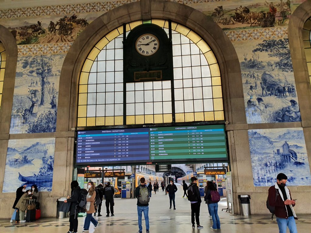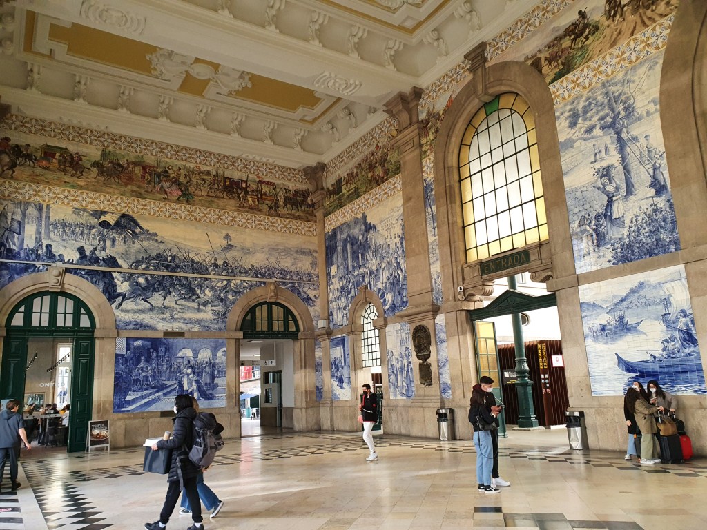 From my hotel I walked downhill towards the heart of Porto and the Douro river. (Both Porto and Lisbon are hilly cities.) On route, I passed São Bento station in the heart if the city, which is only used by local trains these days – longer distance trains all depart from Campanhã further out. I had a look inside São Bento to admire its tiled entrance hall.