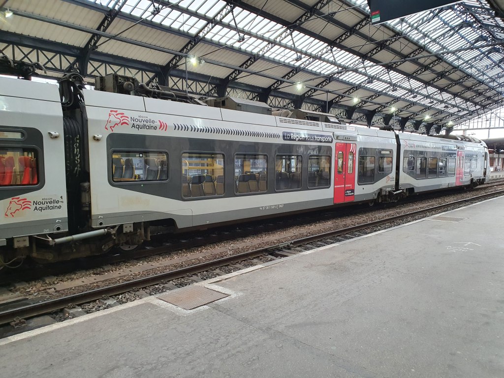 Eventually the departure boards confirmed that the train already standing in the station was the one to take me to Bordeaux, whereupon I went and got on. The train left at 10:01, initially following the Atlantic coast, stopping at once fashionable resort towns such as Biarritz, before heading inland slightly and passing through the seemingly endless Landes forest. The train eventually arrived at Bordeaux St Jean station at 12:43.