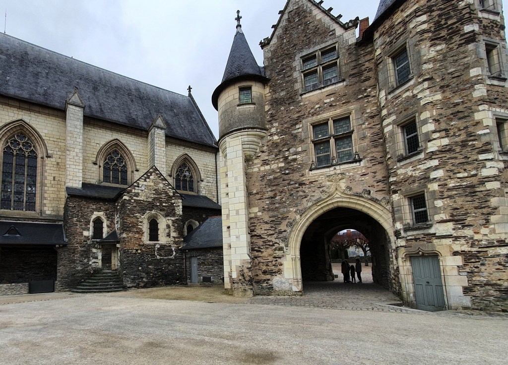 The short train ride to Angers, on which I had an upper deck seat, followed the River Loire for most of its journey, arriving at 14:41. The main reason for coming to Angers was to visit its castle, where I spent the rest of the afternoon. Fortunately the rain stopped for the time I was there. I acquired an audio guide to the castle, whose main construction dates from the 13th Century and was the base of the Dukes of Anjou.