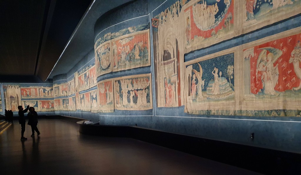 The castle houses the Apocalypse Tapestry, commissioned by the Duke of Anjou in the 14th Century and depicting the Revelation of St John. The tapestry is enormous, it was made in six sections each 6m high and 24m long. It is kept in a specially constructed building within the castle, where it wraps itself round three sides.