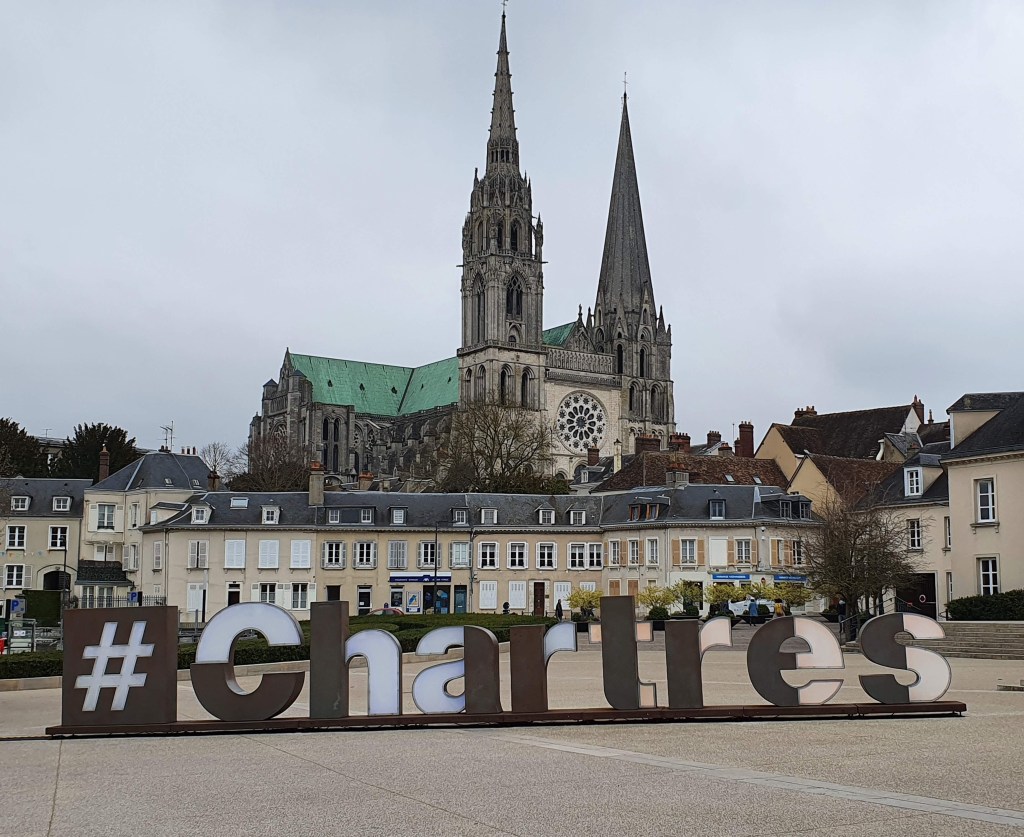 Although it was not raining in Chartres, it was bitterly cold with a stiff breeze. The main reason for coming to Chartres was to visit the cathedral, which I remembered Kenneth Clark enthusing about in the second episode of his 1969 television series Civilisation. There has been a church on the site since at least the 8th Century, but the current Gothic masterpiece dates from the 13th Century, although it has been affected by fires and restoration many times since.