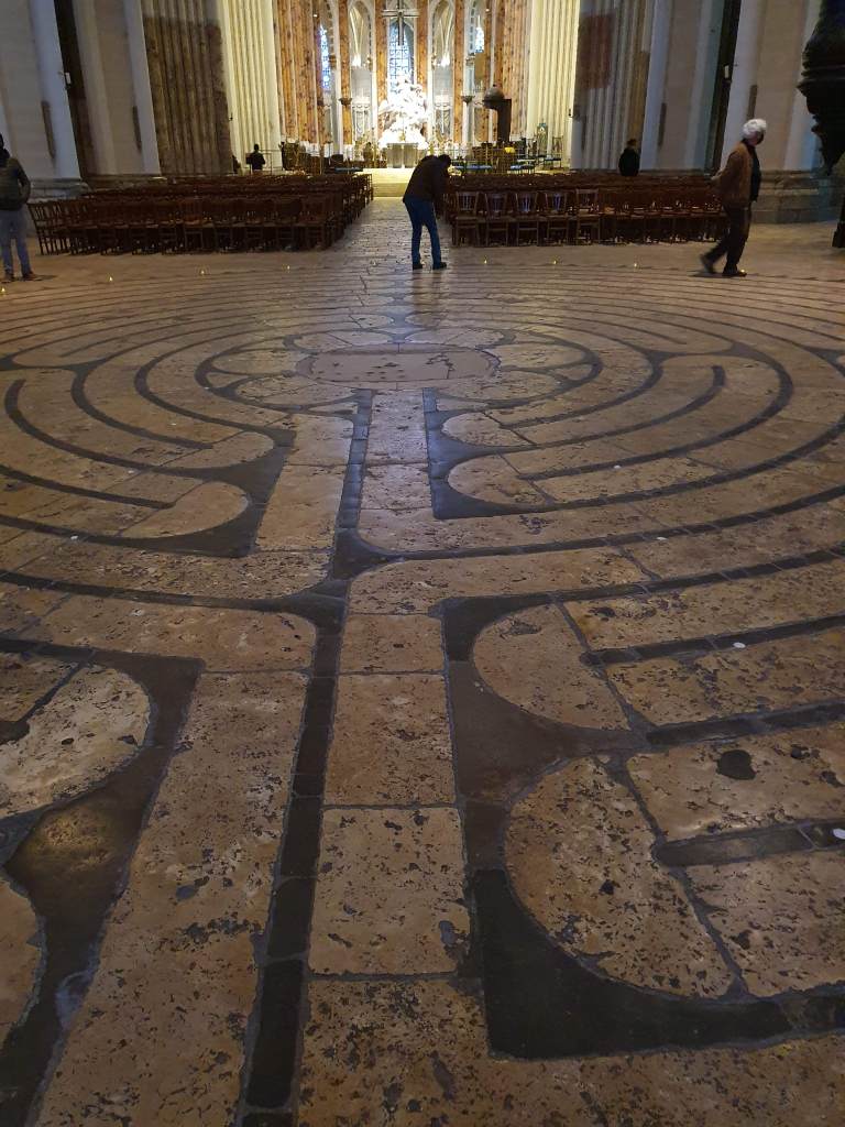 The cathedral also contains a labyrinth marked out on the floor in the centre of the nave of the church. People were reverentially walking its route from the entrance to the centre, some in bare feet. When I joined them, I kept my shoes on and found that it took a surprisingly long time to reach the centre. Once at the centre, you stop to meditate before exiting directly, as there is no specified route out.