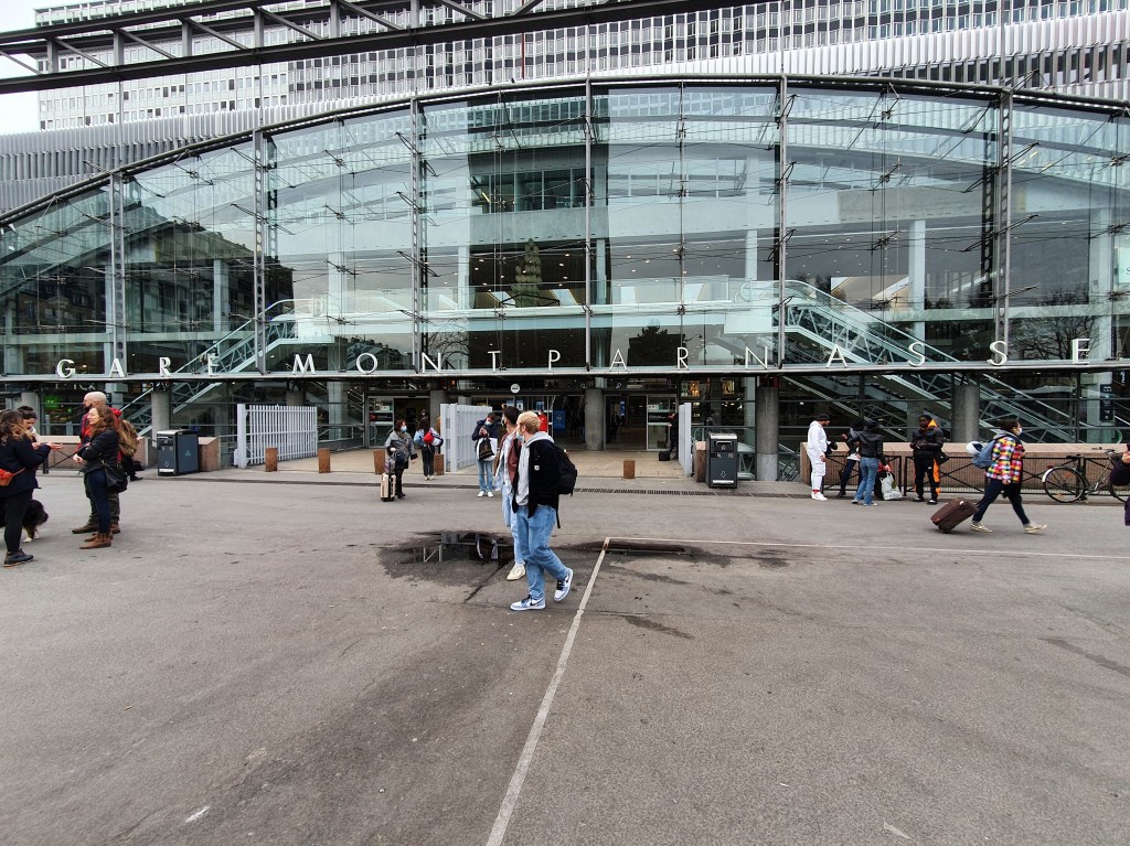 Despite running late for most of its journey, the train arrived on time at 09:54 at Paris Montparnasse. The station was busy and at the entrance to the Metro there was a long queue to buy Metro tickets. However, by looking around I discovered there were additional ticket machines around the corner from the main entrance, where there were no queues.