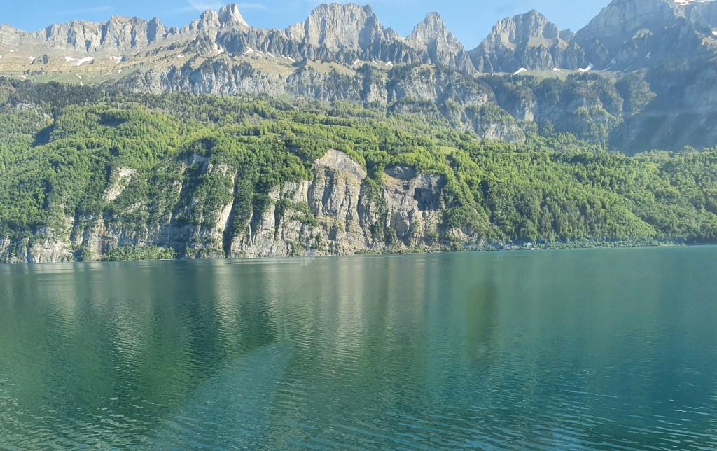 On initially leaving Zurich the train travelled the length of the Zurichsee, on which I had had my boat trip the previous day, before climbing to follow the shore of the even more picturesque Walensee. On arrival at Buchs there was a short hiatus as this is the border station where the train reverses and presumably the engine is changed. I noticed a couple of customs officials wandering about on the platform, but there were no border formalities on the train. The only indication that we were about to enter a new country was the announcement that the wearing of face masks was now compulsory.