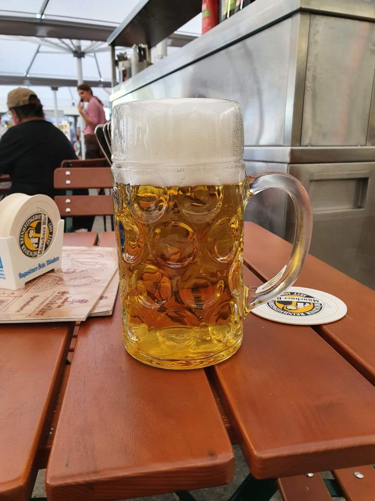 When I returned to Innsbruck my original plan had been to go back to my hotel before going out to dinner. I had identified a likely looking restaurant near the Hofkirche with a pleasant outdoor dining area, but when I walked past it on my way back at about 6pm, I noticed that the outside area was already nearly full, so I decided to grab a table while I could and have an early dinner. After my exercise in the woods I felt that I deserved the mass (one litre glass) of beer that I ordered on arrival. To eat I chose beef in onion gravy followed by apple strudel.