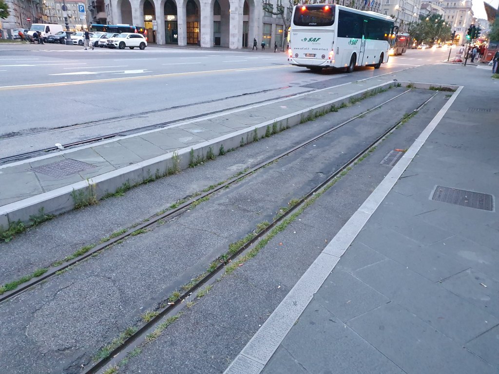 On my way back to the hotel I went past the terminus of the tram route to Villa Opicina on the Slovenian border, which has been shut since an accident in 2016, so there is now grass growing in the tracks. When the trams are running they provide an alternative route from Trieste to Ljubljana, as they connect with several trains per day from Villa Opicina to the Slovenian capital. There were various notices at the terminus about the closure and information about replacement buses, but no indication of when it may reopen.