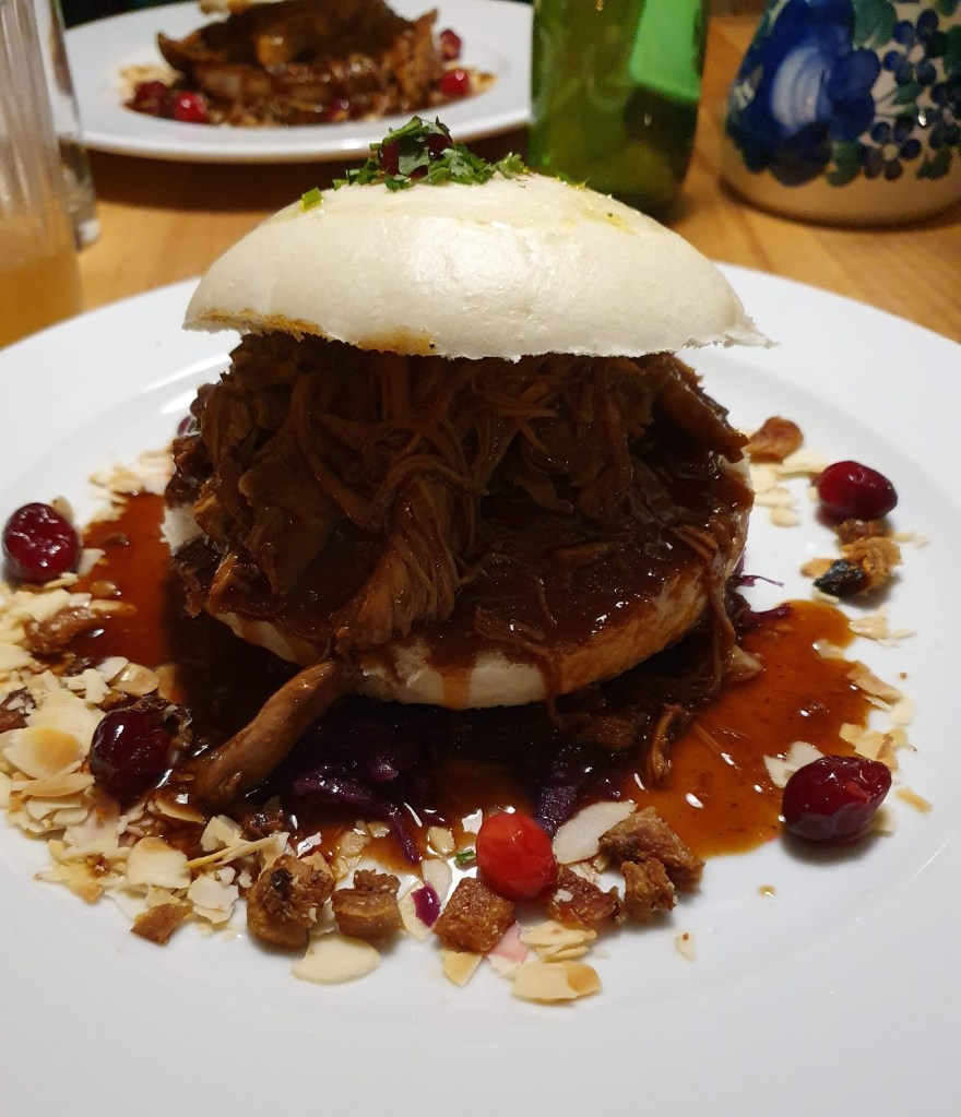 As we left the museum it was starting to get dark and we walked back through the centre of Warsaw, finding the last remaining piece of the ghetto wall and then through the shopping centre adjoining Centralna station and past the People’s Palace. We went to the Georgian Restaurant that I had previously dined in when I had visited Warsaw in 2018, as part of that year’s Chess Train tournament. On this occasion, I had Lobio as a starter which was an interesting pate-like dish made from beans and walnuts, followed by beef and lamb sausages served with roast potatoes.