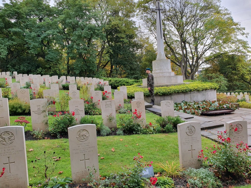 After breakfast we set off to walk to the Citadel Park to the north of the city. This contains a number of cemeteries. The Soviet War Cemetery has a massive monument, which has been adorned with graffiti. There is a separate plot for the victims of the 1956 Poznań Uprising, some of whom were only children. The final cemetery we went to was the Commonwealth War Cemetery, where we were joined by some Polish troops paying their respects. This cemetery contains the remains of many of the escapees from Stalag Luft III, whose exploits were dramatised in the film The Great Escape.