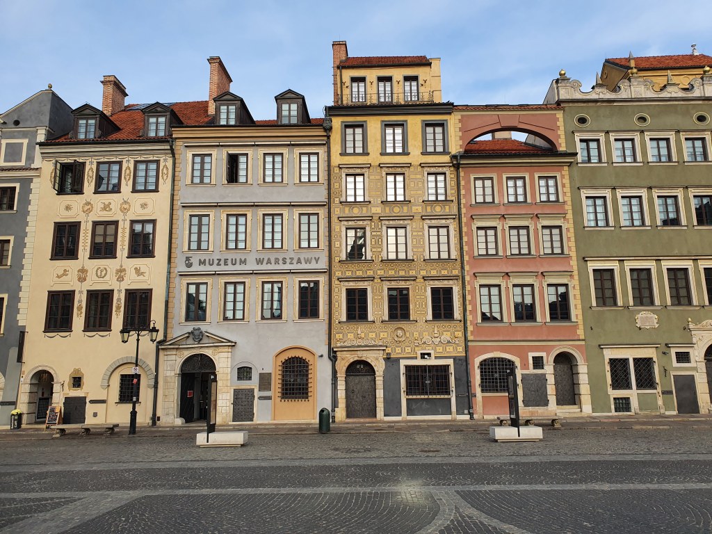 It was early afternoon by the time we had finished in the Castle. From there we walked the short distance to to the Old Town Market Place to visit the Museum of Warsaw, which describes the history of the city. Again, we had been here before in 1992 and I had also visited in 2018 on my Chess Train stopover. This excellent museum occupies eleven former houses located along one side of the Market Place. It took us the rest of the day to complete, following with audio-guides an elaborate one-way system (presumably introduced as a Covid protection measure). One irrelevant fact we learned from the museum was that at the time of our first visit to Warsaw the first kebab shop in the city had not yet been opened – it did not do so until 1993.