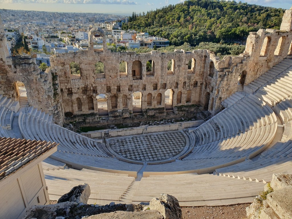 When I had had enough of exploring the summit area and the crowds were starting to build, I started to slowly descend stopping to examine in more detail various sites that I had gone past quickly on the way up, including the Temple of Athena Nike, the Odeon of Herodes Atticus and the Theatre of Dionysos.