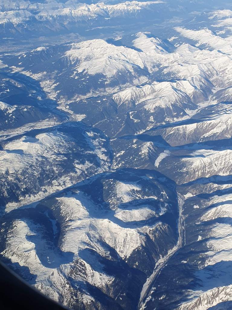 The flight back had amazing views throughout. Apart from when we were over Germany there were clear skies. The flight path took us over Albania, then along the Dalmatian coast to reach Italy between Venice and Trieste. We then flew over the Alps, going directly above the Brenner Pass which I had crossed by train in May, with good views of Innsbruck on the other side. When the clouds cleared after Germany we passed right over the centre of Brussels, before crossing the North Sea to land at Stansted airport a few minutes early. I was shocked to find that there were no queues at all for passports at Stansted – the first time that I had ever experienced that – and because we came to a gate adjacent to the main part of the terminal there was no waiting for the shuttle train. Consequently I was through the airport only about ten minutes after landing.
