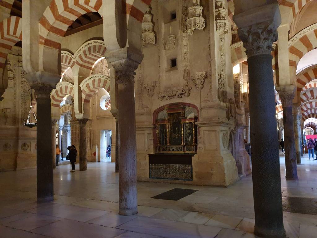 When we came down from the Bell Tower we obtained audioguides for the Mezquita itself. Although we had another timed ticket for the Mezquita, they were not concerned when we went in early. The Mezquita is now the cathedral of Cordoba located within what had been the Great Mosque. The mosque had been expanded several times since it was first constructed in the 8th century and the differences between the periods of construction are clearly visible. The way the columns lined up to produce different geometrical effects fascinated the Dutch artist M C Escher and he created an etching of the Mezquita’s interior which I had seen when I had visited Den Haag the previous month. I was expecting to be impressed by the Mezquita, but I think it exceeded my expectations.