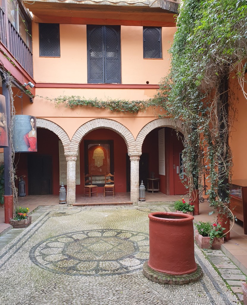 Cordoba is famous for its patios, the tiled courtyards of many of the houses. Our first visit was to the Casa Andalusi, a small house containing a traditional patio. This lovely little building had a trickling fountain at its centre. Next door to the Casa Andalusi is the Museo Le Alquima, the Museum of Alchemy. Rather than containing, as we expected, a history of alchemists in Cordoba, instead it was devoted to promoting some new age pseudo-scientific mumbo jumbo, so in retrospect we could have given it a miss.