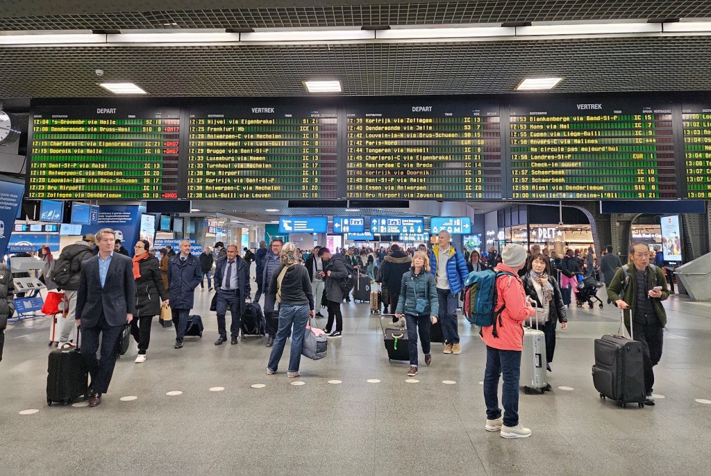 As the connecting passage at Brussels Midi is not currently open, I had changed my seat reservation for one as near the front of the train as possible, so to ensure that I would not be delayed making my connection. I was not best pleased, when I made my way to the door early to get off as soon as we arrived in Brussels, to find that the exit was completely blocked by an enormous trunk belonging to the tour party’s rep.
