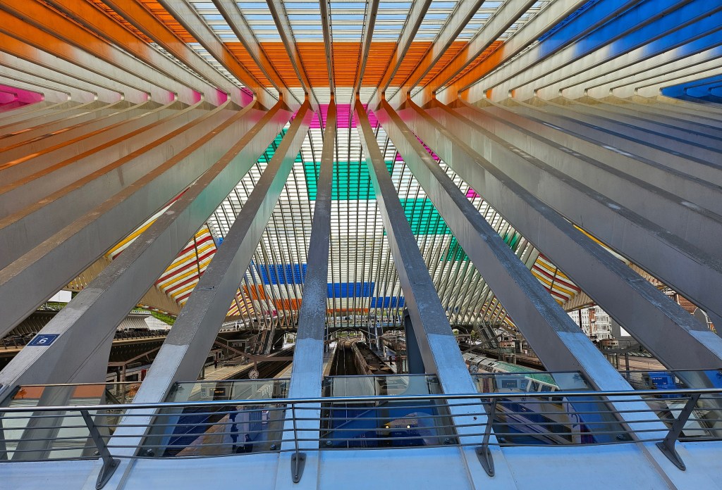 Despite arriving in Brussels five minutes late at 12:10 and the hindrance in actually getting off the train, I still had plenty of time to catch my connection to Liège at 12:28. It was a busy double-decker and I got myself a window seat on the top deck. It takes just over an hour to get to architecturally splendid Liège Guillemins station.