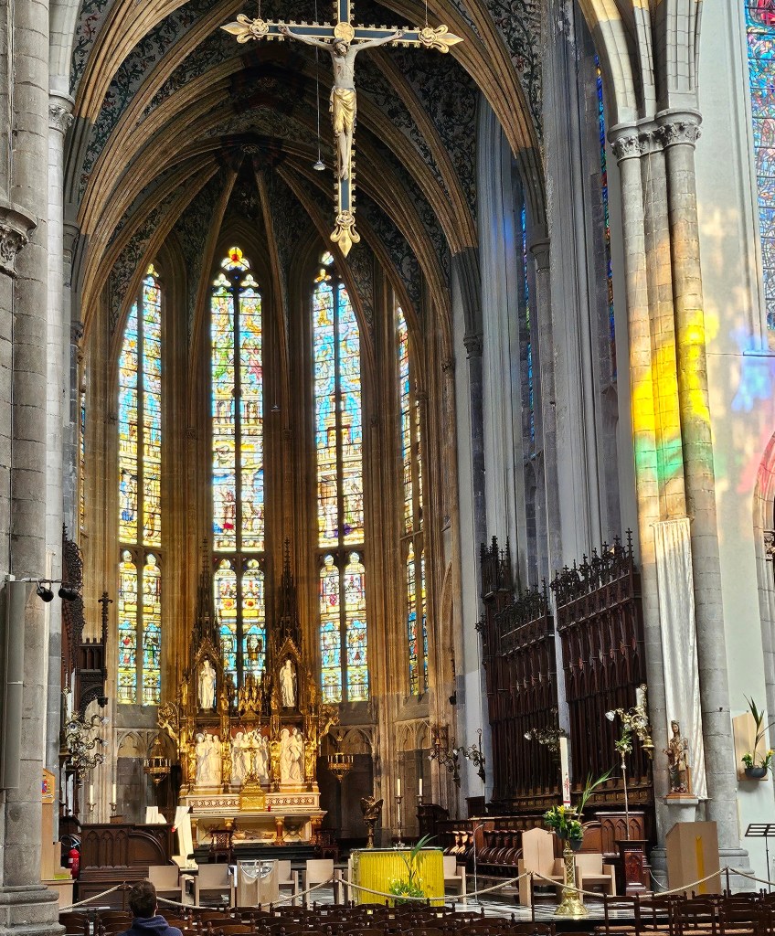 So when I left the museum I walked back to my hotel near Guillemins station, calling in only at Liège cathedral (St Paul’s) for a brief look. My modern hotel was very pleasant, themed on Gaston, a hapless office boy in a strip cartoon carried by Belgian newspapers for many years.