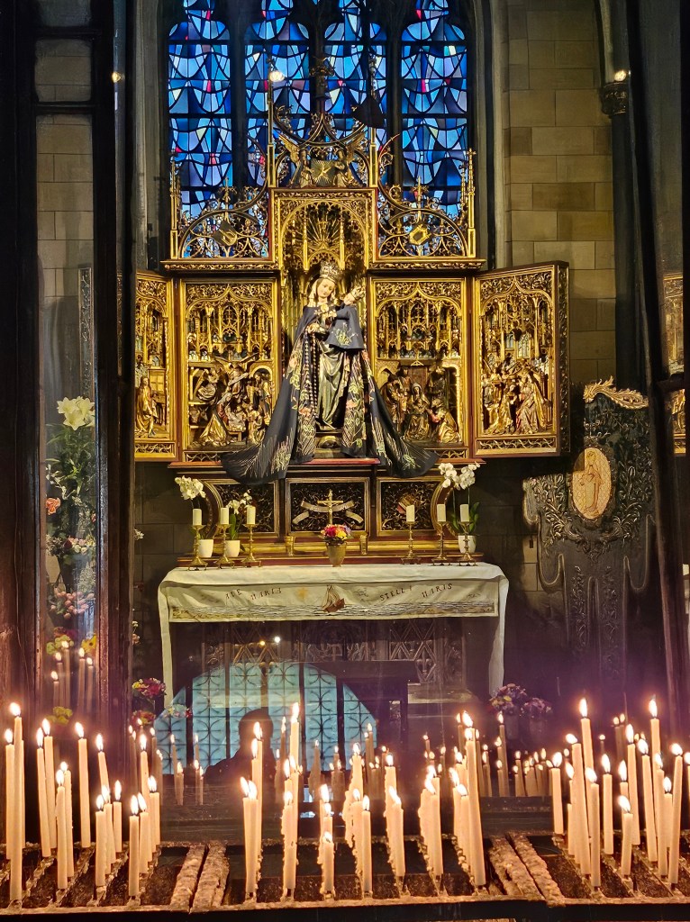 After leaving the museum I walked along the bank of the Meuse/Maas to cross the river into the old town. Although the Netherlands is primarily a protestant country, Maastricht is a Catholic city. The old town contains two basilicas: one dedicated to Our Lady and the other to St Servatius, both of which I visited on my walk around the town.
