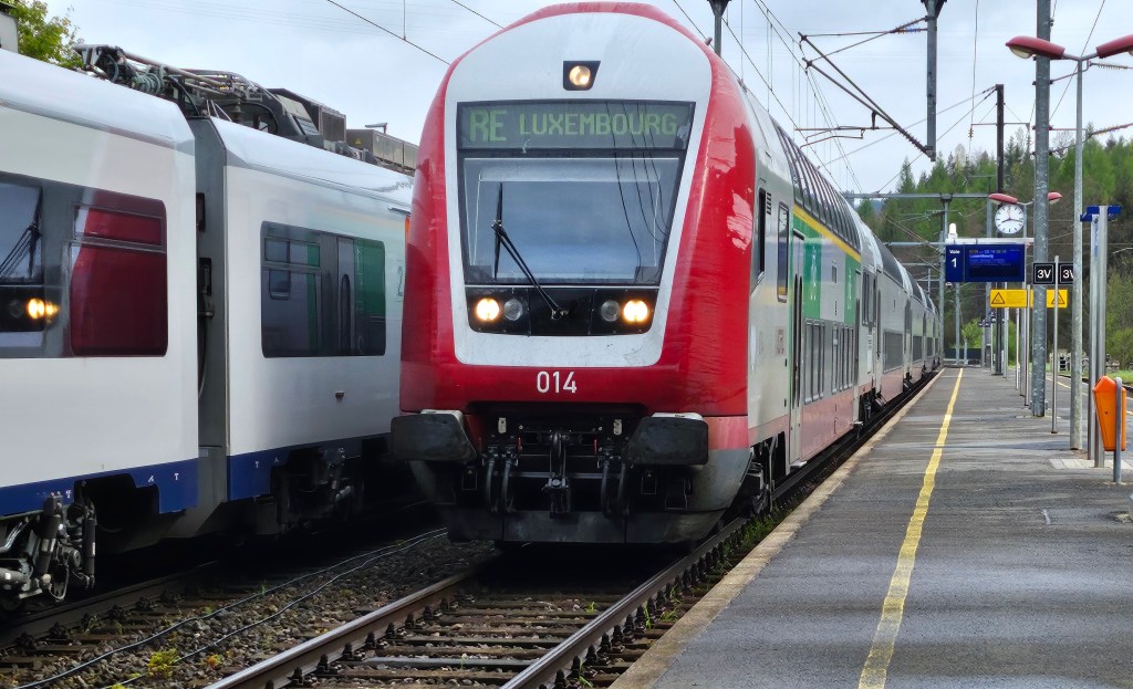 When I had passed through the concourse of Luxembourg station after getting off the bus from Schengen, I happened to notice that there were no trains to Brussels listed on the departure board, unlike on the previous day when I first arrived. So I thought I should check the train I was planning to catch the next morning. When I did so I discovered that the direct line to Brussels was closed for a week starting that day for engineering work in Belgium. That closure was not being shown when I had booked my trip. As I had an ‘Any Belgian Station’ ticket, I had already purchased a ticket from Luxembourg City to Arlon, the first station over the border. This ticket was now useless, as I would have to travel back to Brussels via Liège again, necessitating buying a new ticket from Luxembourg to Gouvy. Although annoying, the financial loss was not great as these cross-border tickets only cost €2.50 each.