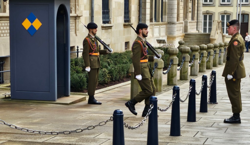 My next stop was to be the Luxembourg City Museum, but I did not take the direct route there, but instead went by the Grand Ducal Palace. I was lucky, as I happened to be at the Grand Ducal Palace just as the changing of the guard was taking place. Note that in this instance ‘the guard’ is a singular noun.