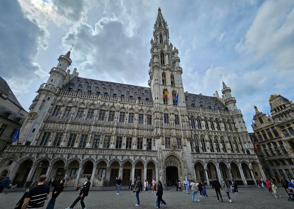 The next train to Brussels left at 12:28 and I travelled on the upper deck of the double-decker train for its hour long journey. I got off at Brussels Centrale and made my way to the Grand-Place. I had not totally decided what to do with my afternoon in Brussels, partly because I had visited on several occasions in recent years and also because Monday is the closing day for many of the museums. I discovered that tours of Brussels Town Hall were only €6 for those over 65, compared with the normal adult price of €15. So I booked myself a ticket for the next available time slot.