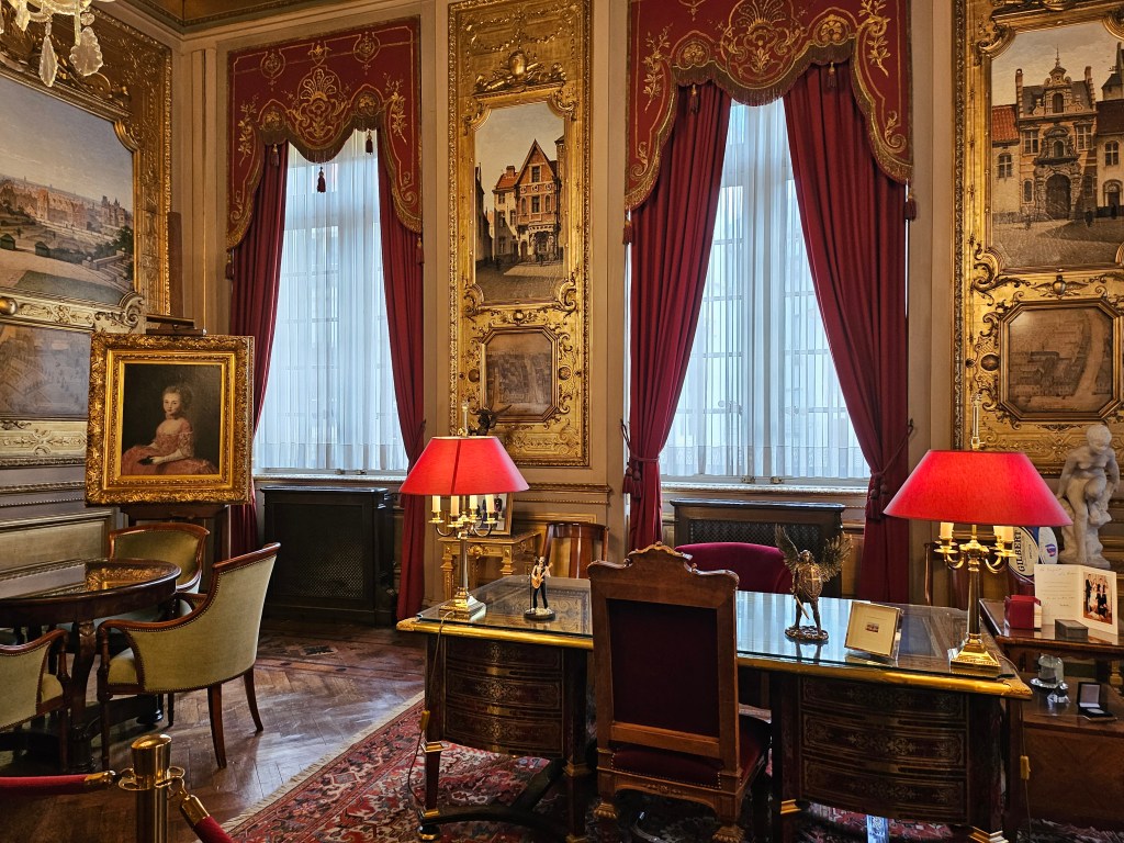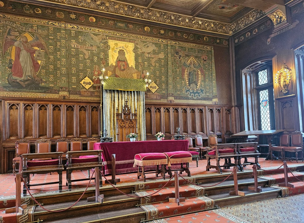 Although the tours of Brussels Town Hall have to be booked for a particular time, they are self-guided using a hand held audio-visual device. The Town Hall is a very impressive building both externally and internally, with the main part built in the 15th century and a later wing added in the 18th century. The building is now largely used for ceremonial purposes, rather than being the seat of Brussels local government. The tour was very comprehensive taking about 90 minutes to complete.