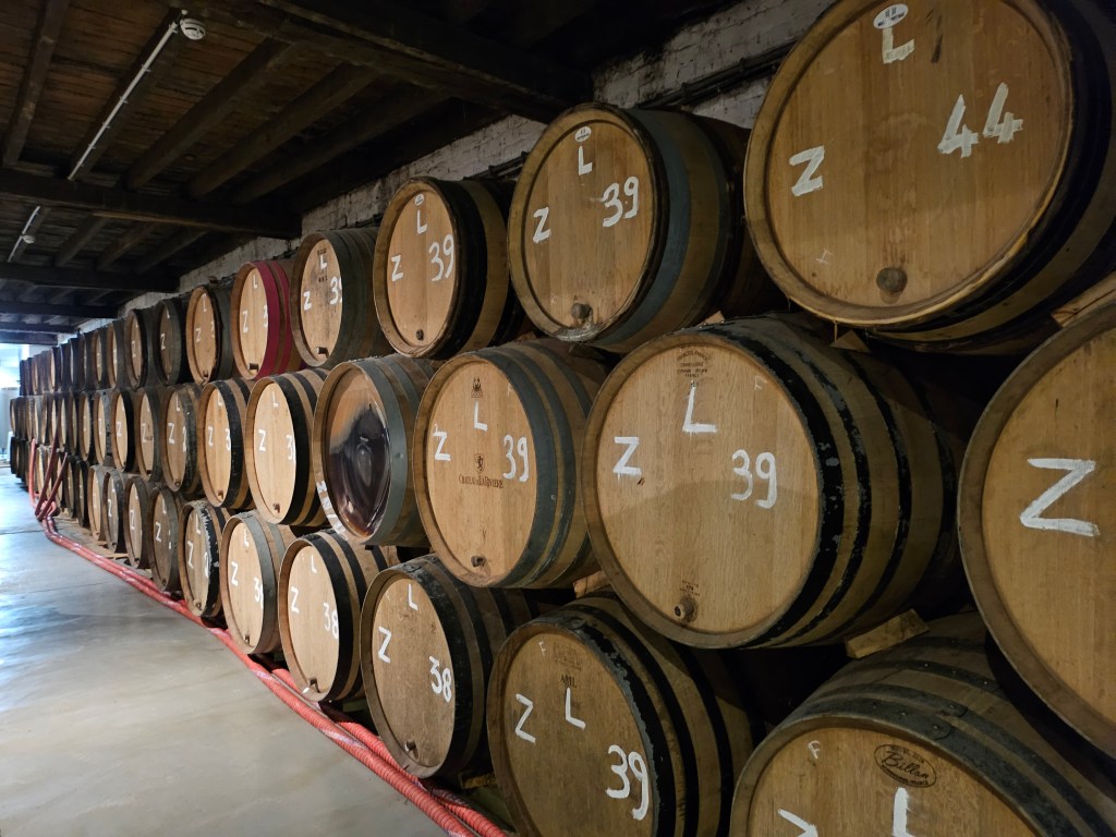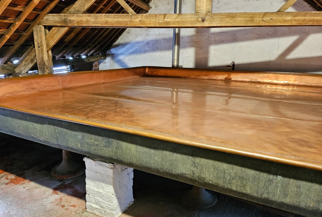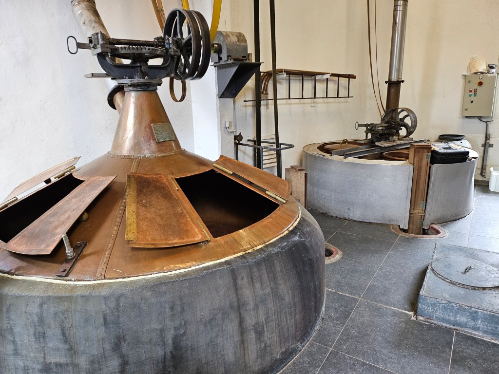 From the Town Hall I walked to the Cantillon Brewery to the south of the city in the Anderlecht district. I had previously visited the brewery about 35 years ago, so I thought a revisit was due. It is also very convenient for when you have to catch a train from Brussels Midi. The brewery only produces lambic-based beers. It relies on spontaneous fermentation of the beers by exposure to yeasts in the air. Consequently brewing can only take place in the winter months when the conditions are conducive for air-based fermentation. At the time of my visit, brewing had just ceased for the summer. After touring the working parts of the brewery, one retires to the bar for a tasting of three different brews.