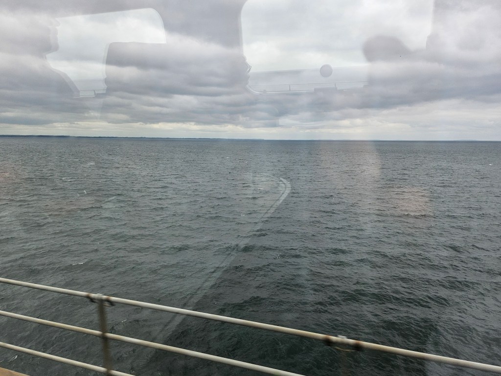 Boarding was very quick and we were soon ready to depart. I went onto the outside deck to see us leave at 12:15, but it started to rain and, once we left the shelter of the harbour, it became very windy and rather unpleasant to be there. Unlike my trip across the Gulf of Bothnia last September, no cabin was included in the similar price for the journey. Fortunately, I managed to find a seat in a quiet area for the duration of the crossing, only occasionally venturing outside when the rain eased. Also unlike the Gulf of Bothnia crossing, no free WiFi was provided on board. I decided not to buy an expensive WiFi package for the three hours needed, and also I had to turn off my mobile phone reception, as the ship did transmit a satellite mobile signal which would be even more extortionate if you connected.