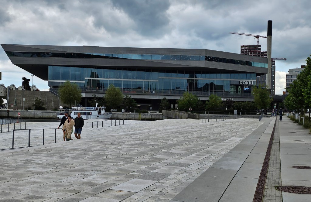 That day was Constitution Day in Denmark when, although not an official public holiday, schools are closed and most people are given the day off work. This may explain the large number of families with children in ARoS that afternoon. When I left ARoS and walked through the same main shopping street that I had been down the previous day, it was now deserted, with all the shops and most of the cafes shut. Given Aarhus is a port city, I felt that I should not leave without going to have a look at the harbour area. One of the large modern buildings on the harbour-front is Aarhus’s main public library. As I was finishing my exploration of the area, the rain returned, but fortunately I managed to get back to my hotel before it became too hard.