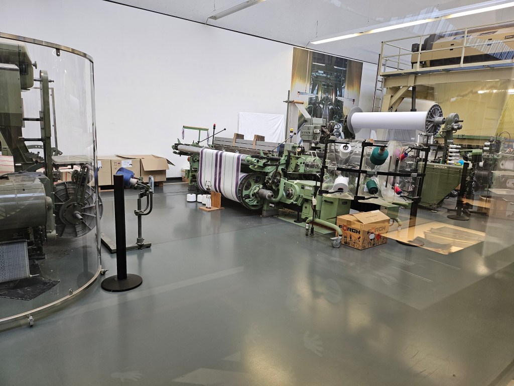 Like Wuppertal where we had visited earlier on this trip, Augsburg was once a textile town. All that remains of this legacy is the Textile and Industry Museum. As this museum opens at 9am, an hour before the others in the city, we went there first. Thankfully, the rain had stopped so we could walk there without having to put our umbrellas up. As we knew we would be pressed for time that day, we just bought a ticket to the permanent exhibitions, rather than the special exhibitions located on the upper floors. These permanent exhibitions explained the various weaving and printing techniques used with a variety of materials and the history of the textile industry in Augsburg.