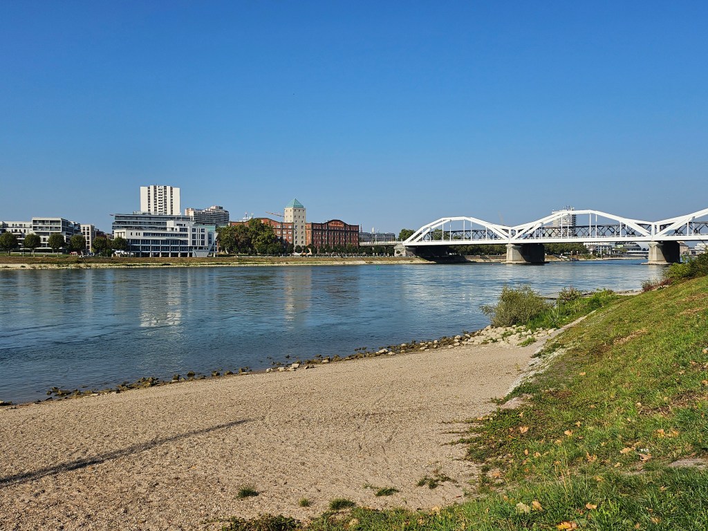 As we now had some spare time in Mannheim, we took the opportunity to walk from the station through a park to the banks of the River Rhine. From the Rhine we then looped back through more of the park to view the exterior of Mannheim’s Baroque Schloss. On the way back to the station, I sought out a bakery to buy a filled roll for my lunch. Unlike elsewhere, nearly all the rolls here had slices of boiled egg added as part of their garnish. As I have a lifelong revulsion to eggs, I had to buy one of the few rolls available that was egg free.