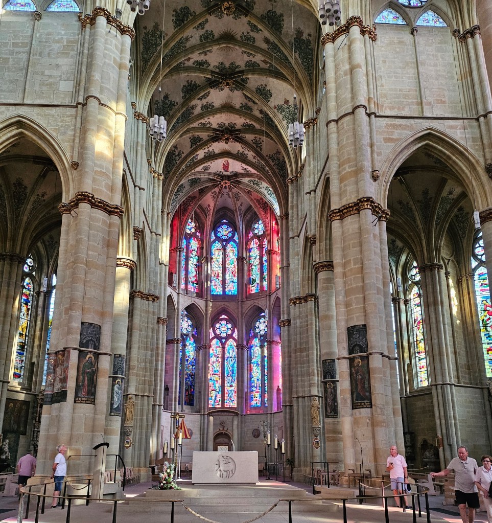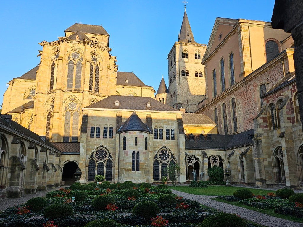We got up early as we had a lot to pack into this full day to be spent in Trier. First we went to Trier Cathedral, getting there at 8am, to be able to visit it between the two scheduled morning masses – the cathedral is Catholic and is dedicated to Saint Peter. The earliest parts of the cathedral date back to Roman times, but it has been added to many times over the centuries.