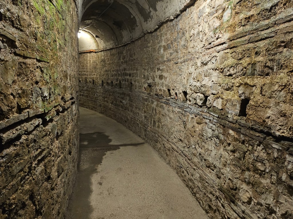 We then used the card we had purchased the previous day to access the well-preserved Roman Amphitheatre. It is cut into the side of hill, which today has vineyards growing on its upper reaches. The amphitheatre was used for gladiatorial contests and could accommodate 20,000 spectators. One can explore the passageways underneath the arena, as well as climbing up into the stands.