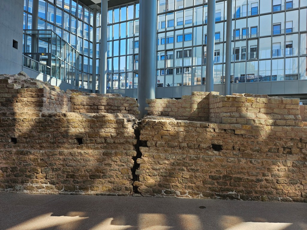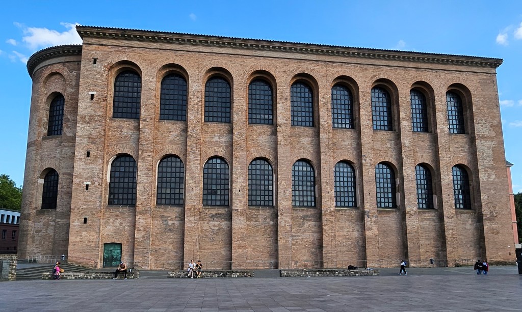 We bought a card from the tourist office to give us admission to the various Roman sites around the city. The only one we had time to visit that afternoon was the Porta Nigra, an impressive four-storey Roman gate that was originally part of the Trier’s city walls. If you do the Duolingo German language course, you will have been urged to visit Trier to see the Porta Nigra. In the Middle Ages the Porta Nigra was incorporated into two churches, but these were pulled down in 1804 on Napoleon’s orders during French control of the city, and the Porta Nigra returned to its original Roman form.