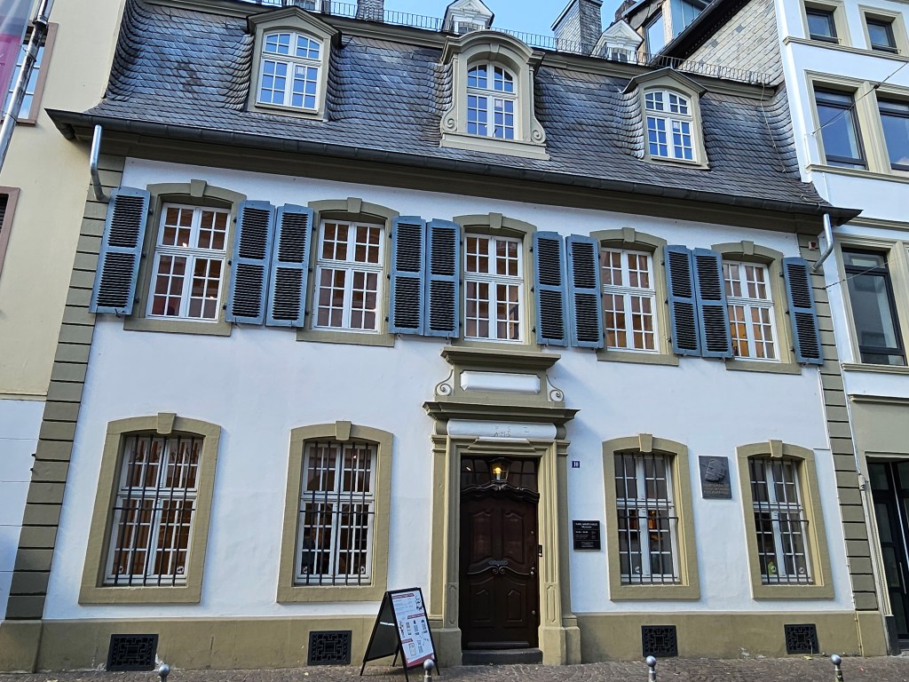 Having started our time in Germany with a visit to the childhood home of Friedrich Engels, it seemed appropriate to finish it with a visit to the birthplace of Karl Marx. Marx only lived in this house for the first 18 months of his life before the family moved to anther home near the Porta Nigra. The Karl Marx birthplace is now a museum. Compared with the Engels House, I felt it was rather more hagiographic in its portrayal of Marx as an individual. During our visit we shared the building with a large Chinese tour party, whose members were continually taking selfies throughout the museum.