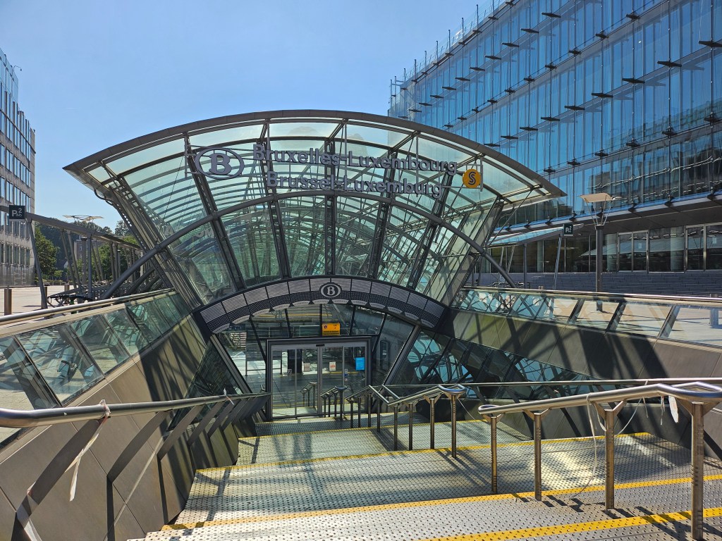 At 11:36 the next train to Brussels arrived at Arlon. Unlike our original train this was a double-decker, so there was still plenty of room to accommodate the additional passengers. Much of the line to Brussels via Namur is undergoing engineering work and in April I was prevented from travelling on it at all. Our train seemed to travel very slowly, albeit to timetable, throughout much of its route. Rather than go all the way to Brussels Midi, we got off the train at Brussels-Luxembourg station at 14:06.