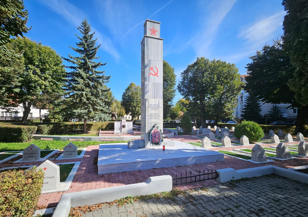The station is a little way from the old centre of Sighișoara, across the Târnava Mare river. On the way, I passed a Soviet war cemetery, which was surprisingly well maintained with a couple of freshly laid wreaths. Only the main grave in the centre had a name on it, the rest were for unknown soldiers. One account that I read suggested that by the time the Soviet army had reached Sighișoara, the Germans had already fled and that the Major honoured in the main grave was shot by a local when he was trying to rape his wife. The unknown soldiers met their fate by being drowned in a drunken stupor, when a wine storage tank they had shot holes in to access the wine had burst open, flooding the cellar they were in. I cannot verify the veracity of this, but I do not think I have previously encountered such a pristine Soviet memorial in Eastern Europe in recent times.