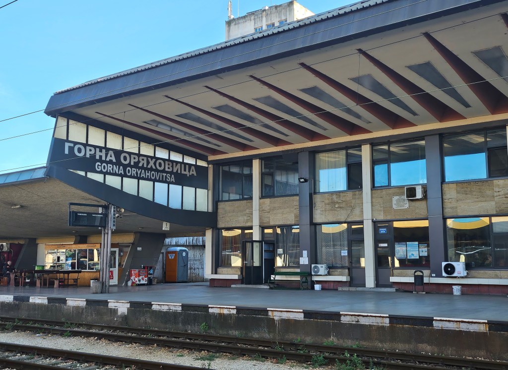 Leaving Romania 20 minutes late, we crossed the wide Danube on the Friendship Bridge linking the two countries. Although only a short distance from the Danube to Ruse station my train was delayed by some freight movements and we arrived 30 minutes late, just five minutes before the onward connecting train was due to depart. At Ruse, we were prevented from getting off the train until a border official had taken up position at each of the two sets of doors and everybody had to just hand over their passport as they got off. We were then allowed to wait on the platform, but there were a couple of policemen to stop anyone proceeding further until their passport was returned. As at Giurgui, the passports at Ruse were taken away to the station building to be examined. When the official returned there was a large scrum of people waiting and she placed the pile of passports on a concrete wall by the entrance to a passageway. She then went through the pile calling out each person’s first name, and if that produced no response, tried again with first name and country. However, it appeared that the pile of passports was now in reverse order to that in which they had been handed in and those at the back of the scrum could not hear their names being called.