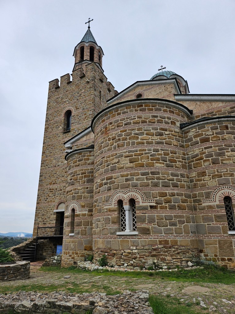 The citadel of the early Bulgarian Tsars was the Tsarevets fortress, which was just a short walk from my hotel. This enormous complex is situated on the Tsarevets Hill and is enclosed with thick stone walls all the way round. I arrived there just after it opened to visitors at 9am. Initially, there were very few other people at the site and and, as I had a whole day in Veliko Tarnovo, I could spare the time to explore it thoroughly. In the middle of Tsarevets near the highest point of the hill are Baldwin’s Tower and the Orthodox Cathedral of the Ascension. Both these buildings are 20th century reconstructions of earlier medieval originals. The interior of the cathedral is completely covered in ornately painted frescos.