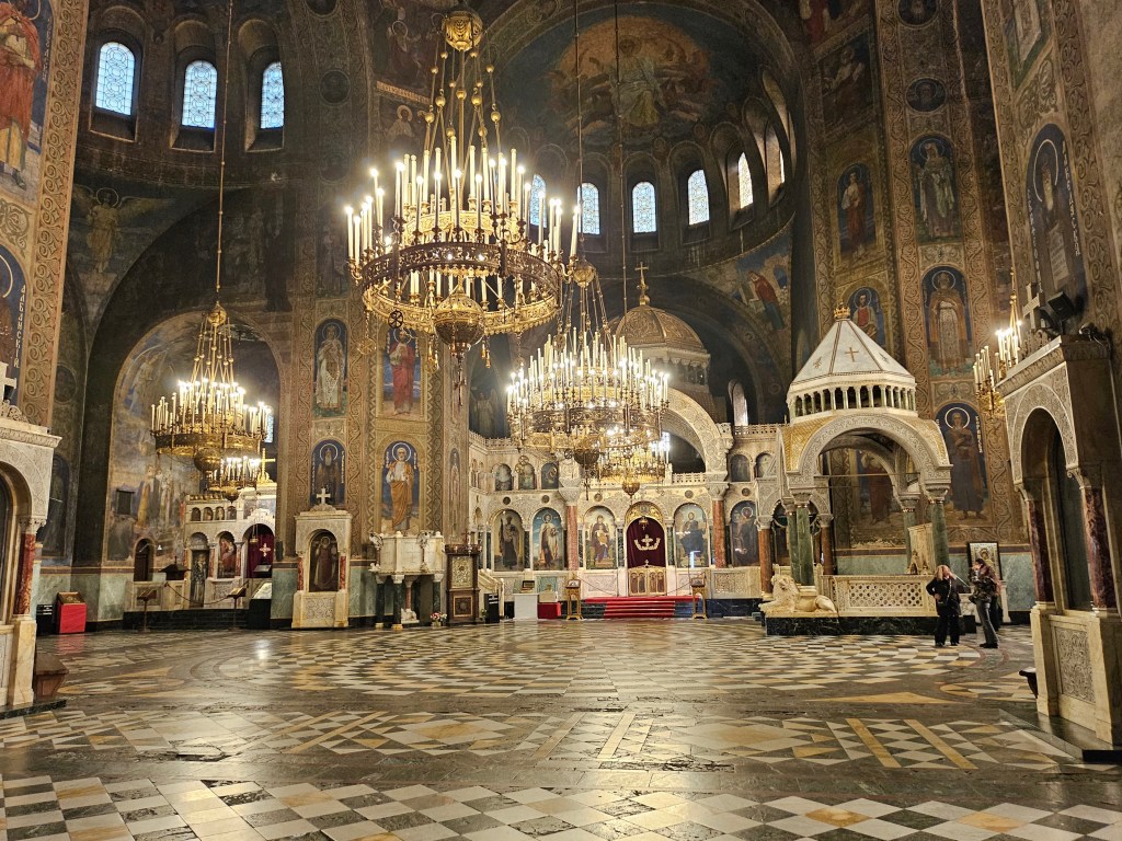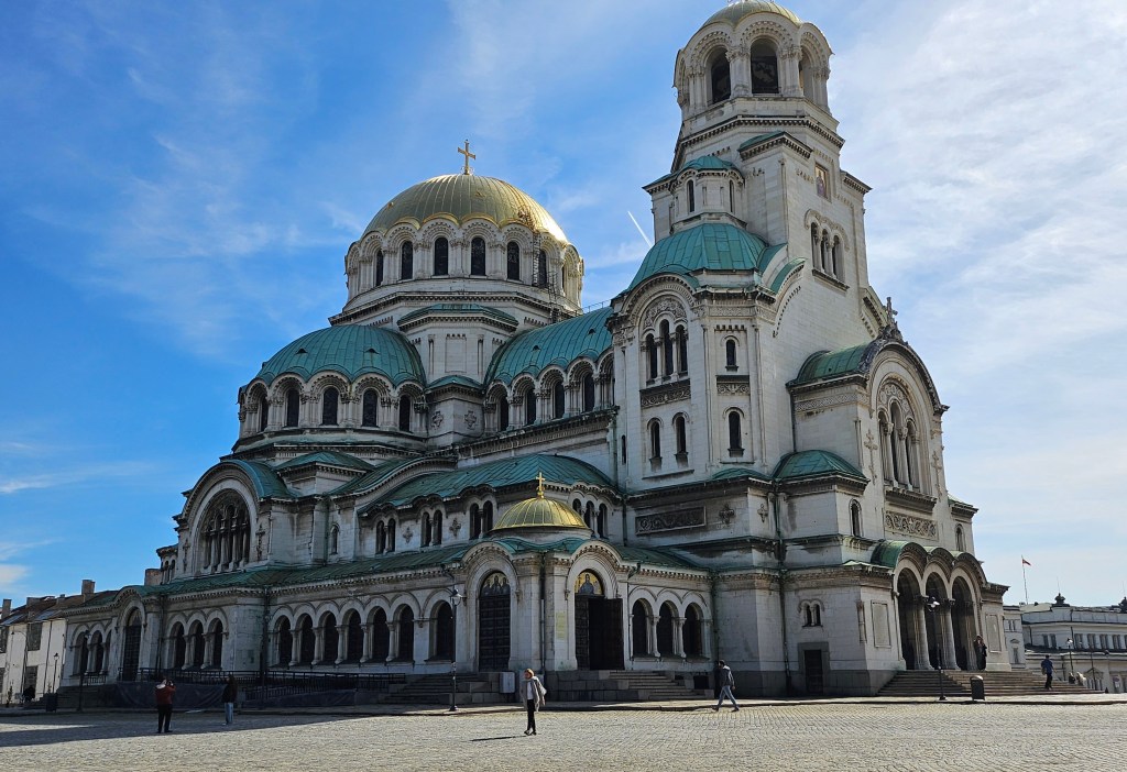 I walked through the centre of the city past the the parliament and main government buildings to reach the Alexander Nevsky Cathedral. This large, impressive building is the main cathedral of the Bulgarian Orthodox Church. Construction was started in 1882, shortly after the liberation of Bulgaria from the Ottoman Empire, but not completed and the cathedral consecrated until 1924. It is named after the Russian prince Saint Alexander Nevsky, in memory of the Russian troops who died helping liberate Bulgaria in the Russo-Turkish war of 1877-78. While the outside of the cathedral is impressive, the inside is breathtaking with ornate, colourful decorations covering all of the walls.